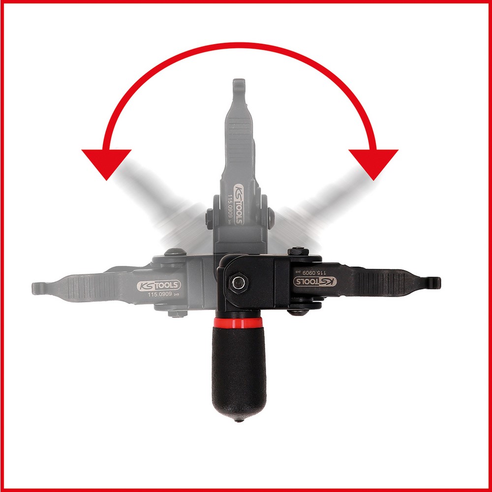 - mehr Flexibilität beim Einsatz durch 180° verstellbare Zangenspitzen
