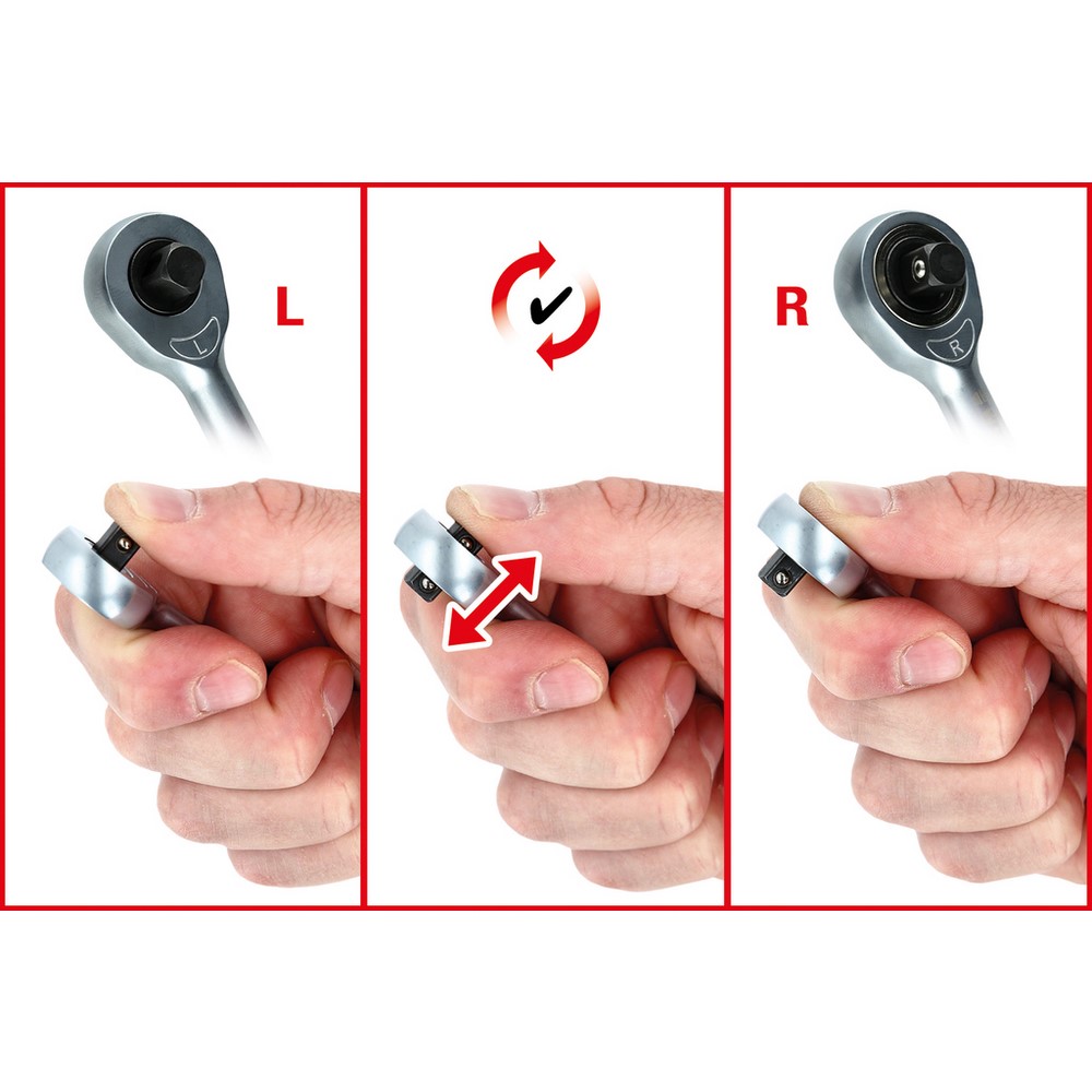 - unverlierbarem Durchsteckvierkant für Rechts- und Linksanzug