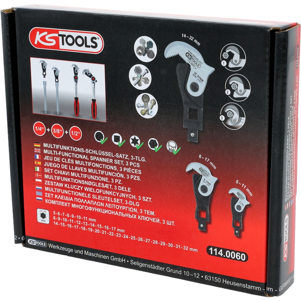 KS TOOLS 1/4"" + 3/8"" + 1/2"" Multifunktions-Schlüssel-Satz, 3-tlg