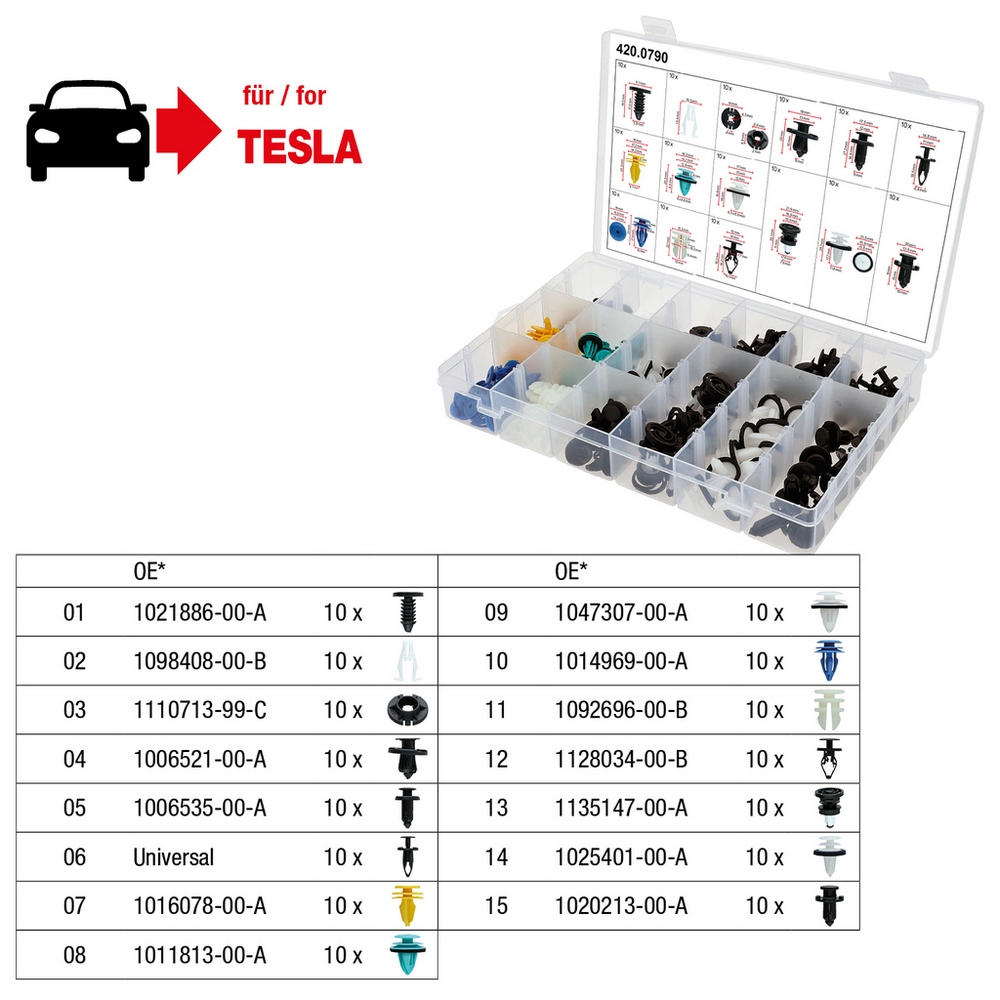 KS TOOLS Befestigungs-Clip-Satz für Tesla, 150-tlg