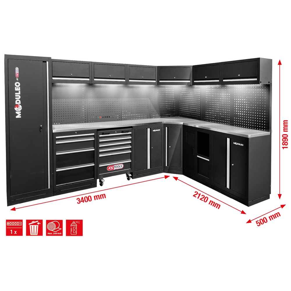 KS TOOLS Werkstatt-Schranksystem, L-Form, 3400 x